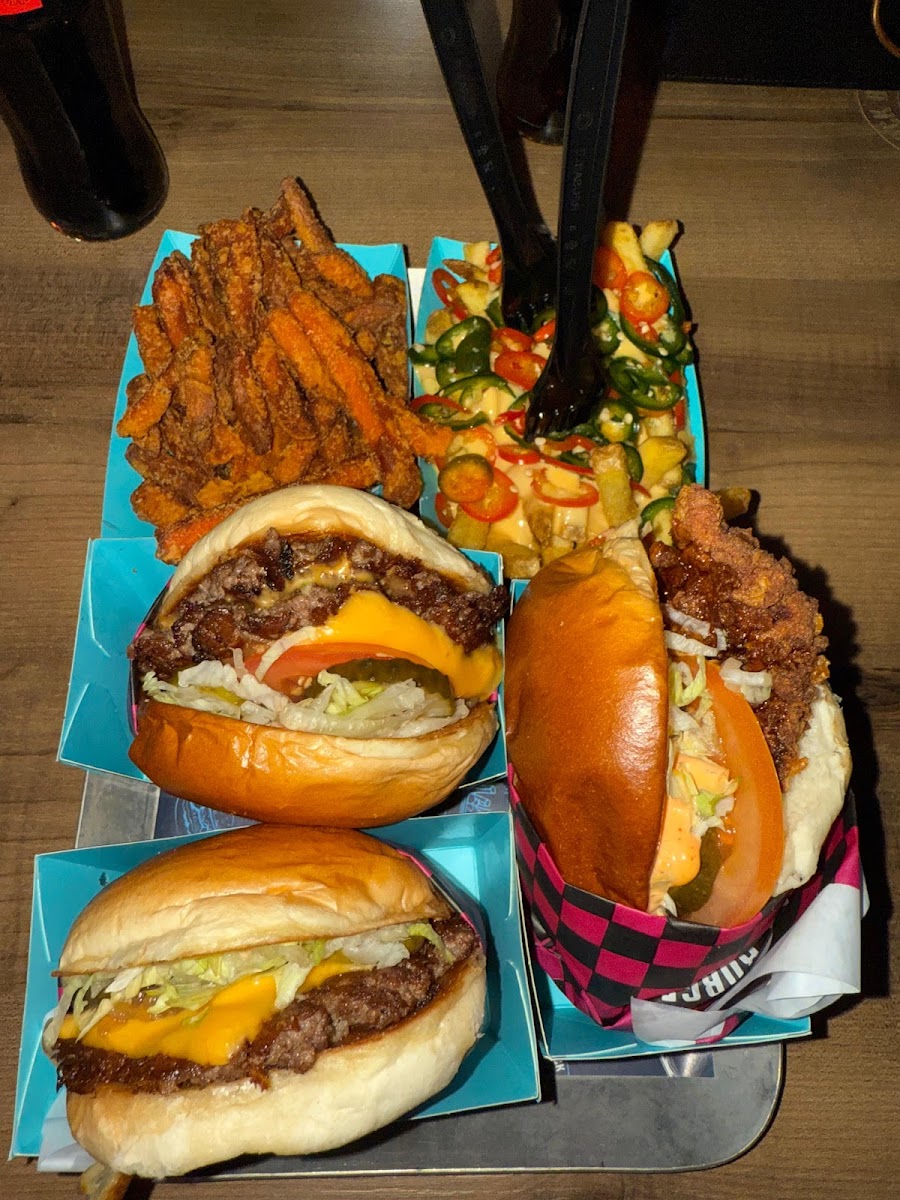 Burger was fresh and the environment was very nice. The cashier woman was very welcoming. Both sweet potatoes and pommes were perfect.